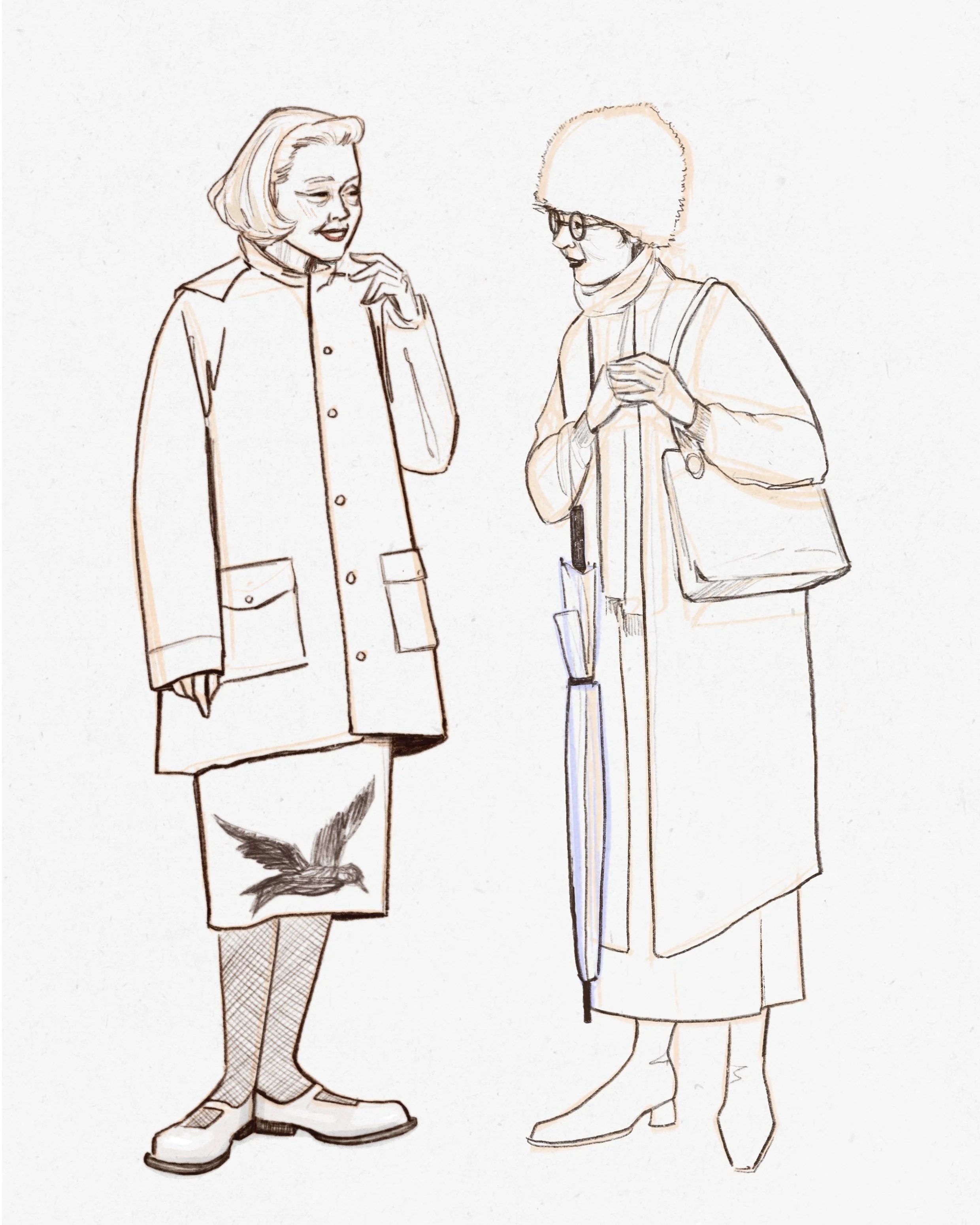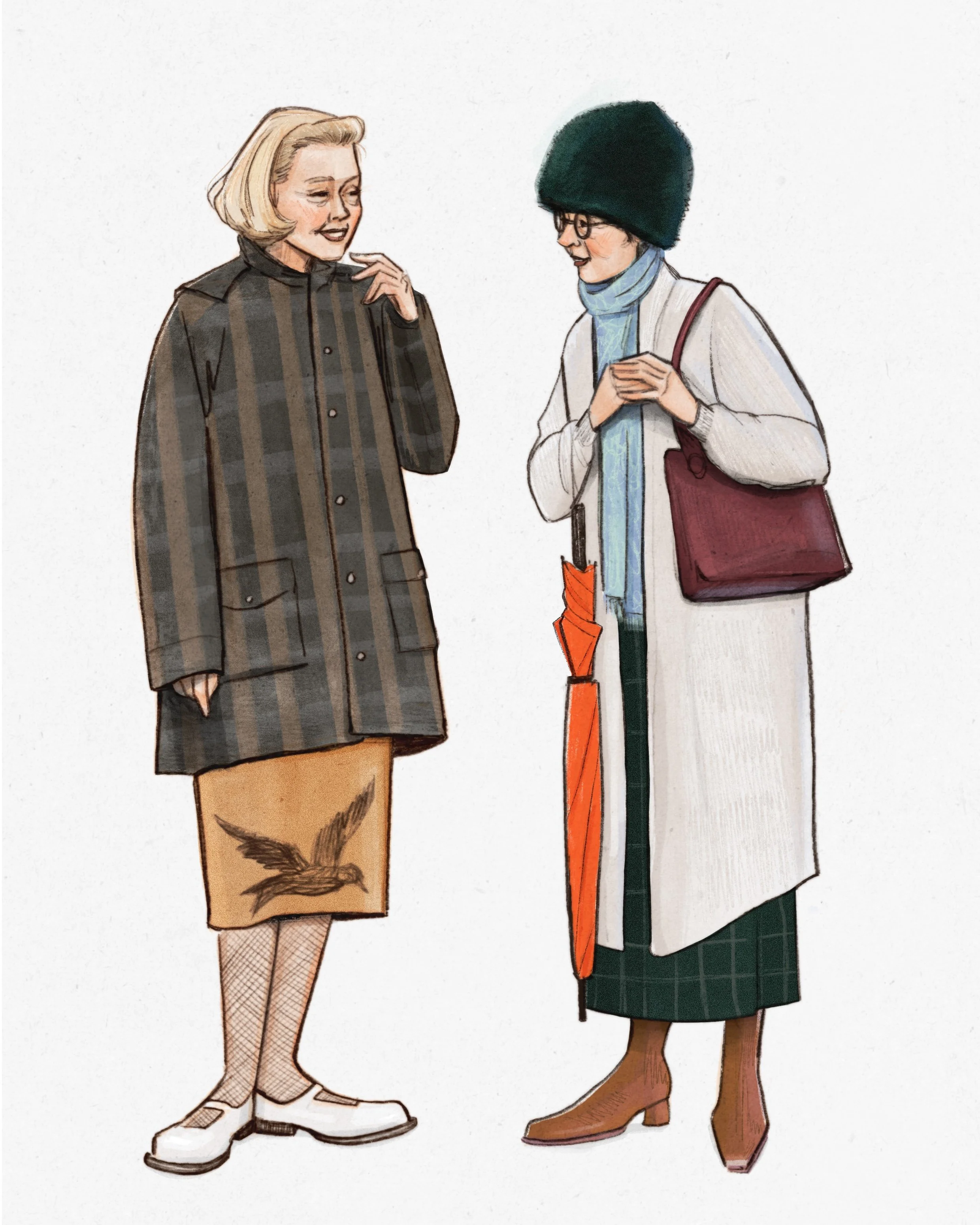 During my visit to Hobart in 2023, I observed two stylish women standing across the road and I was inspired by their unique sense of style and elegance.